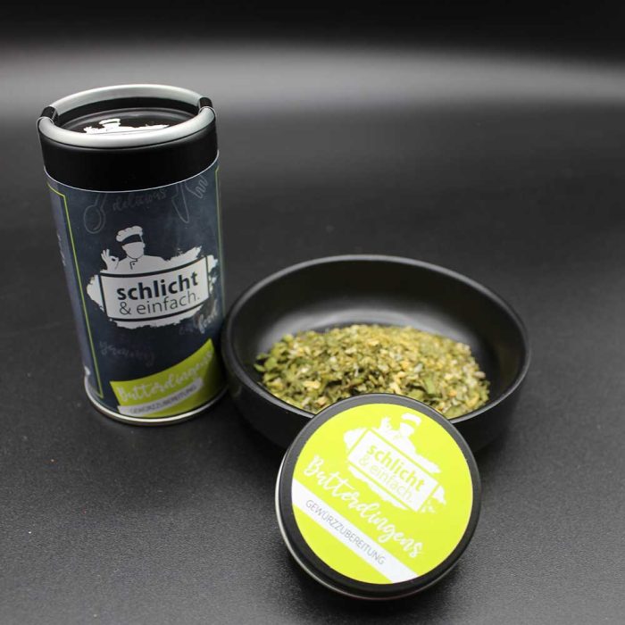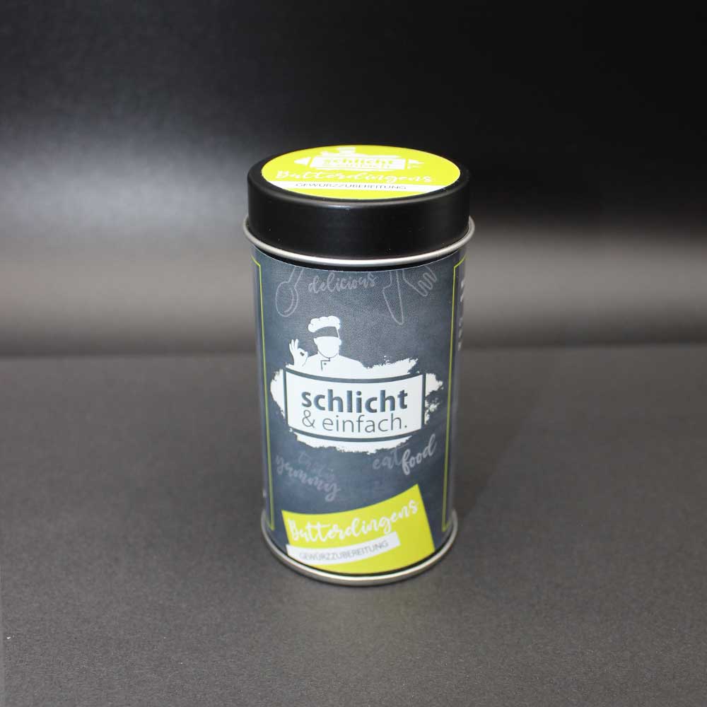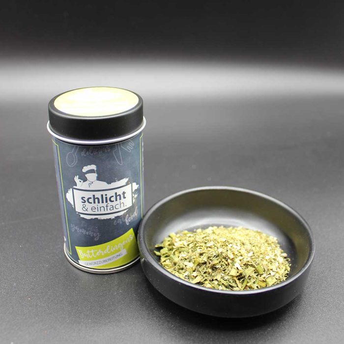 Die Dosen von Butterdingens haben keinen Streuaufsatz, da der Gastronomiegedanke bei diesem Gewürz niemals fehlen darf. Gewürzt wird bei schlicht & einfach, einfach eben mit den Fingern.